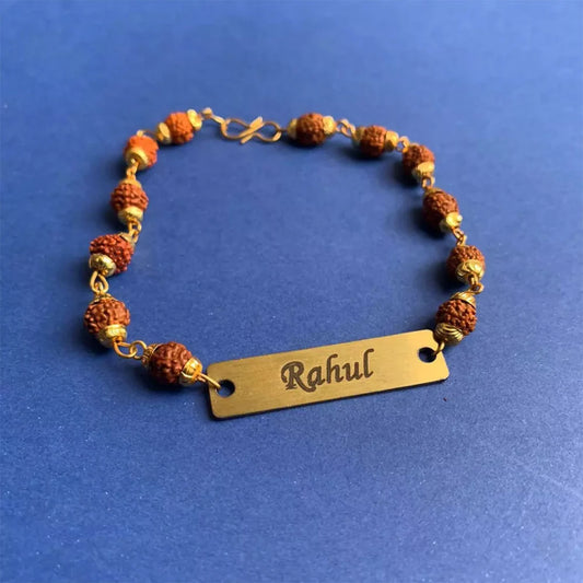 Personalized Rudraksh Chain Rakhi With Name Engraving