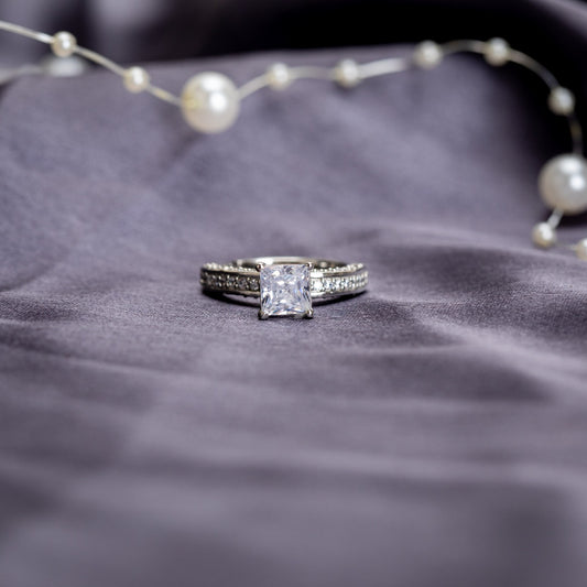 Square Diamond Sterling Silver Ring